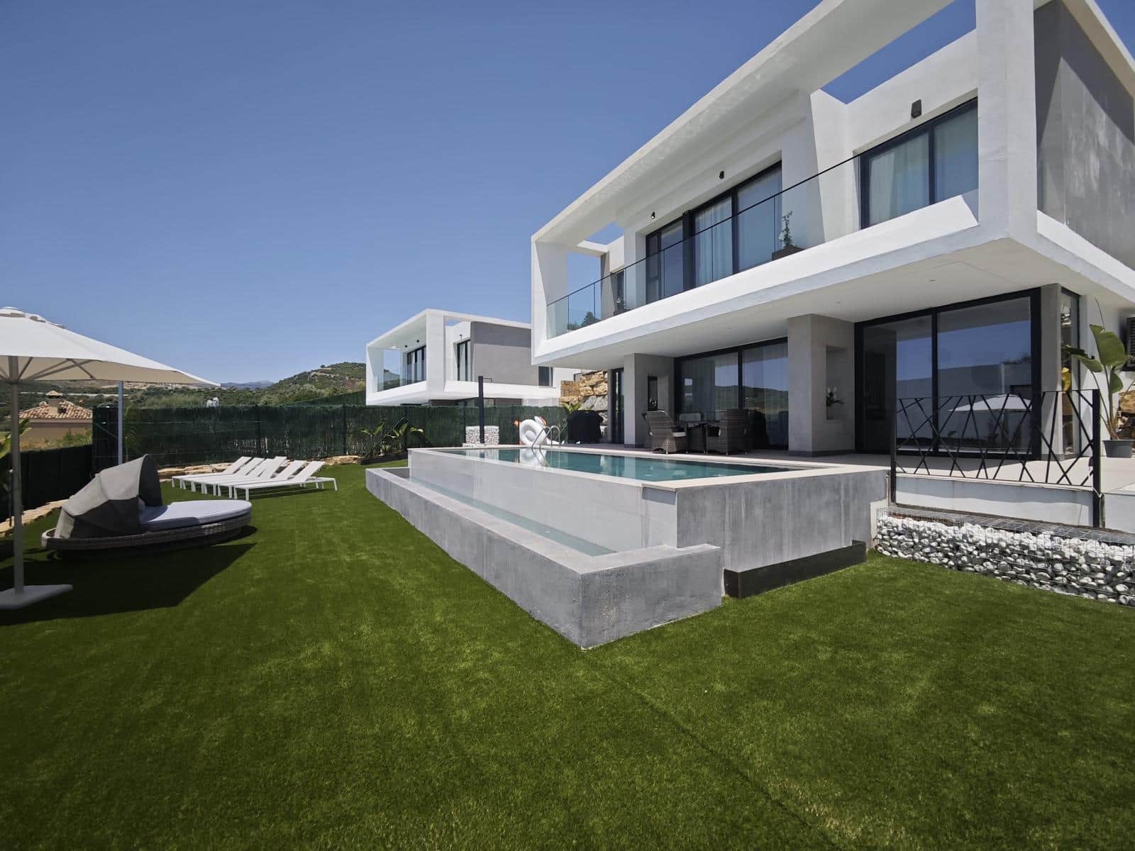 Casa M² is a newly-built villa situated in a prestigious development of eight luxury homes, nestled in the tranquil and scenic Roman Valley (Valle Romano) of Estepona. Offering an unrivaled combination of comfort, privacy, and sophistication, Casa M² is the perfect choice for those seeking a peaceful retreat in one of the most desirable locations on the Costa del Sol.