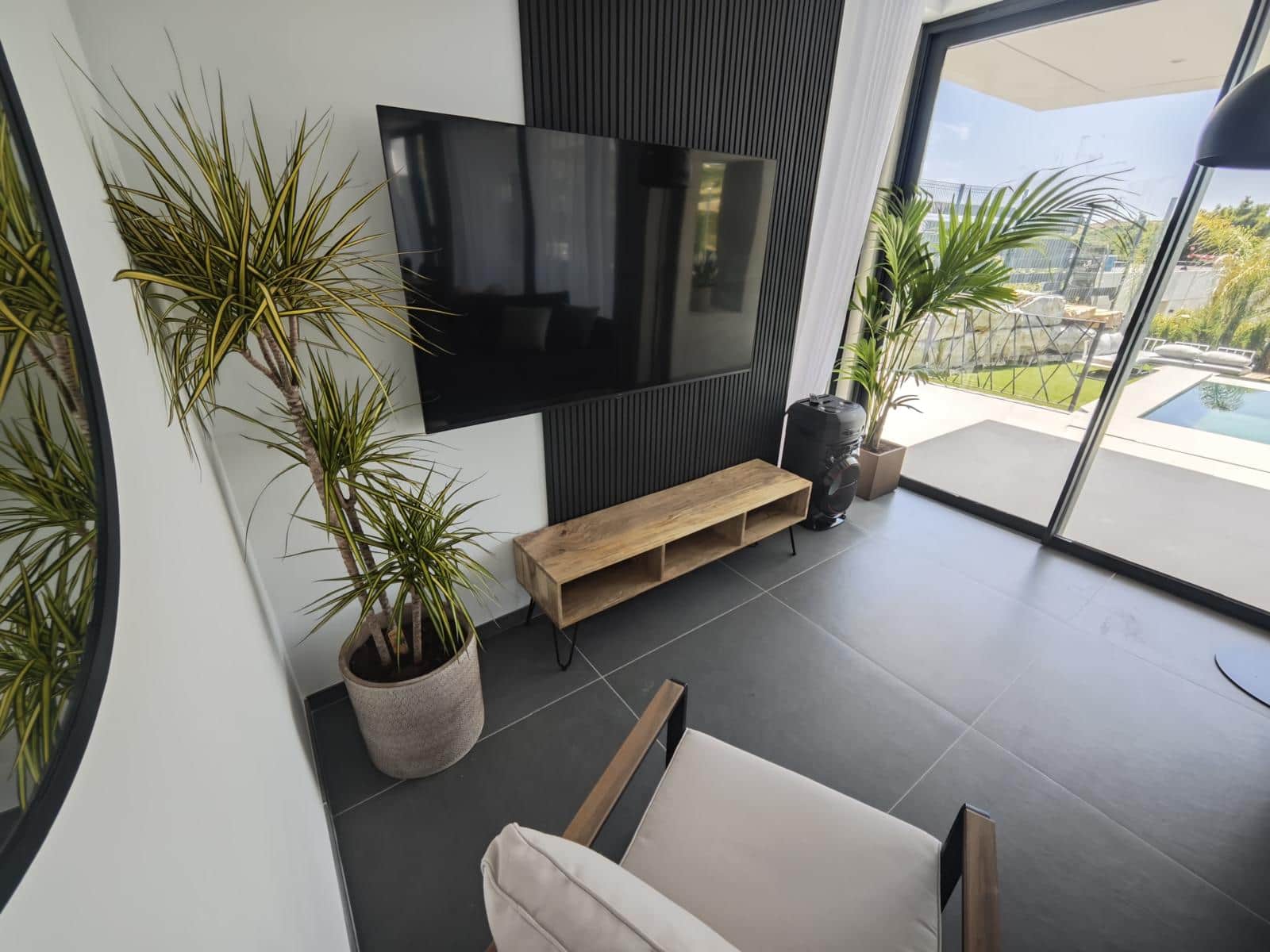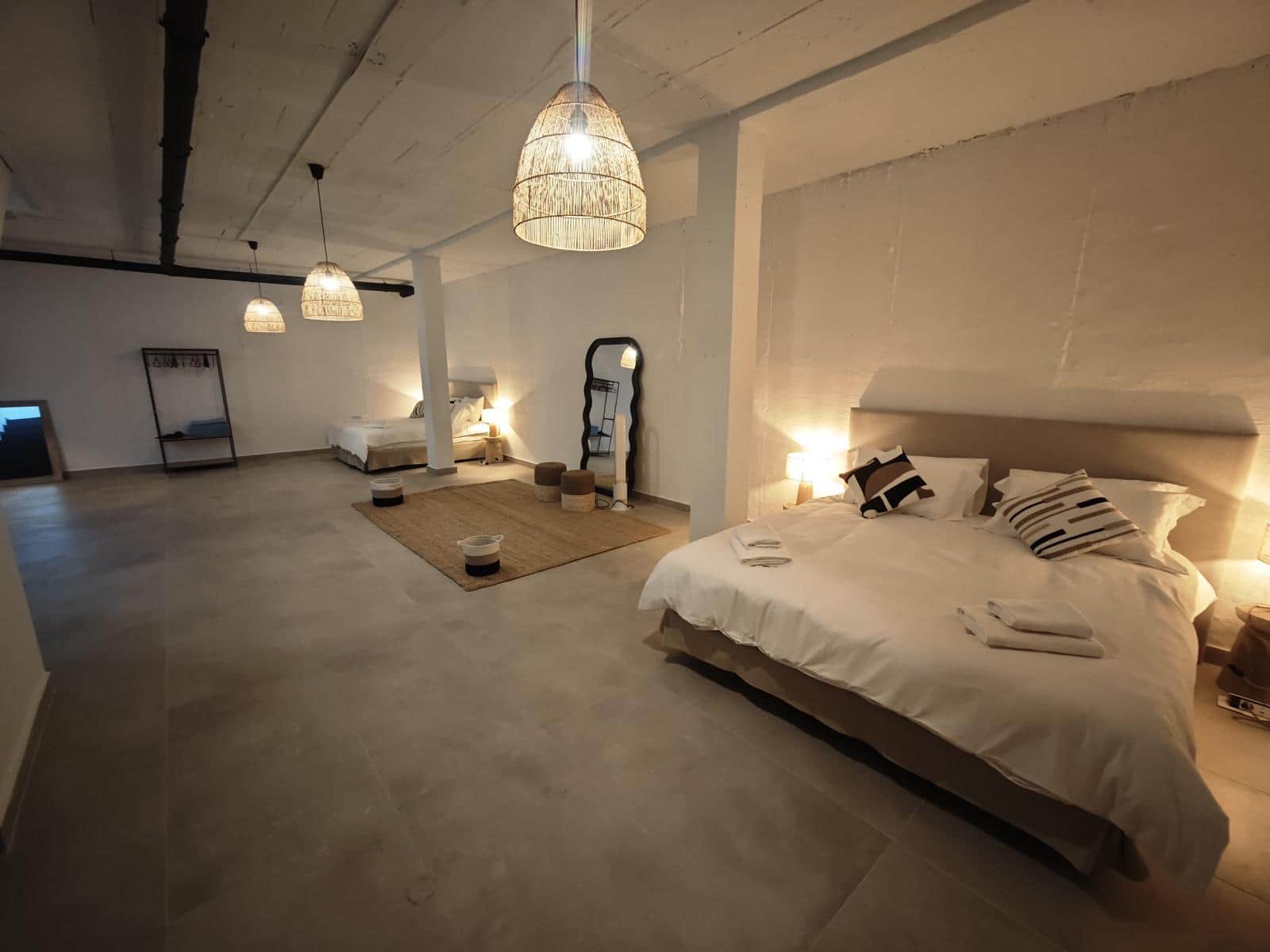 Featuring 2x double beds with luxury memory foam mattresses, Egyptian cotton bedding, open-plan wardrobes, full-length mirror, and stools for added convenience. Outdoor Living: The outdoor spaces at Casa M² are designed to elevate your stay, combining relaxation with entertainment and