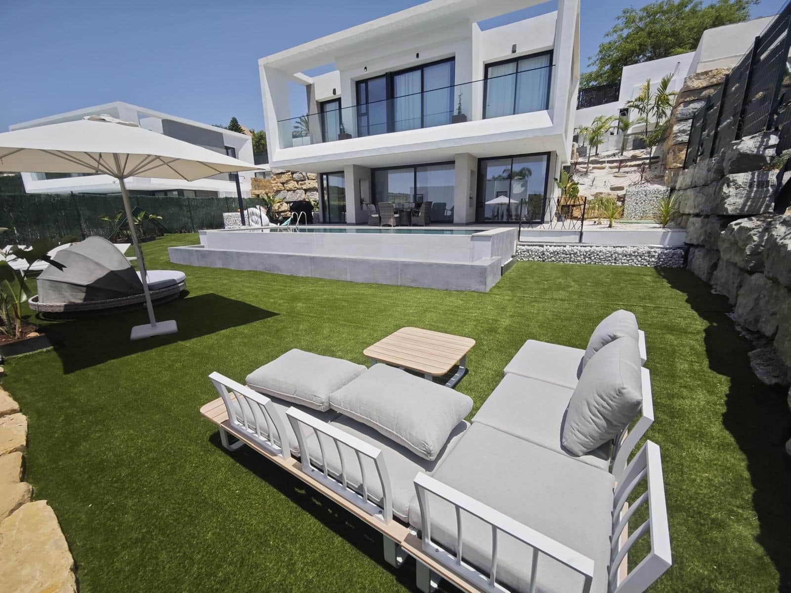 Discover this stunning 4-bedroom villa in Valle Romano, Estepona, part of an exclusive development of 8 luxury homes. Just 15 minutes from Puerto Banús, the villa spans three elegant floors and is finished to the highest standards. With stylish interiors, private outdoor space, and modern comforts throughout, it’s the ideal escape for guests seeking relaxation, sophistication, and the best of the Costa del Sol lifestyle.